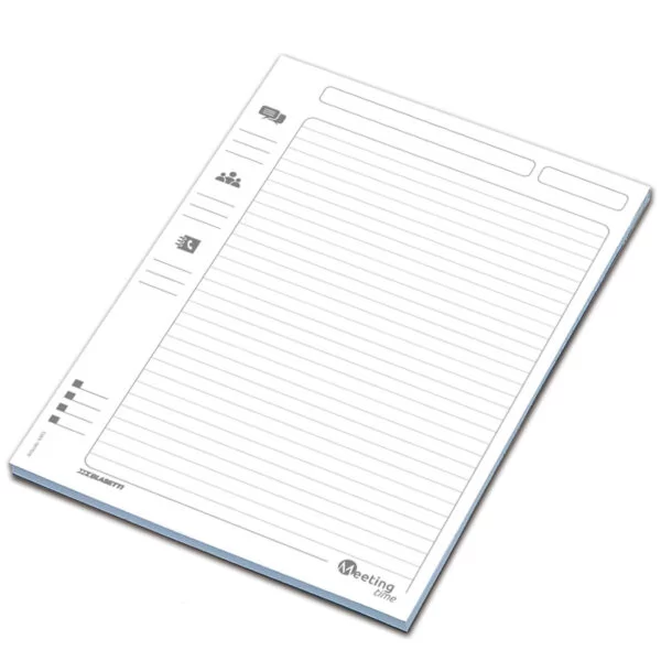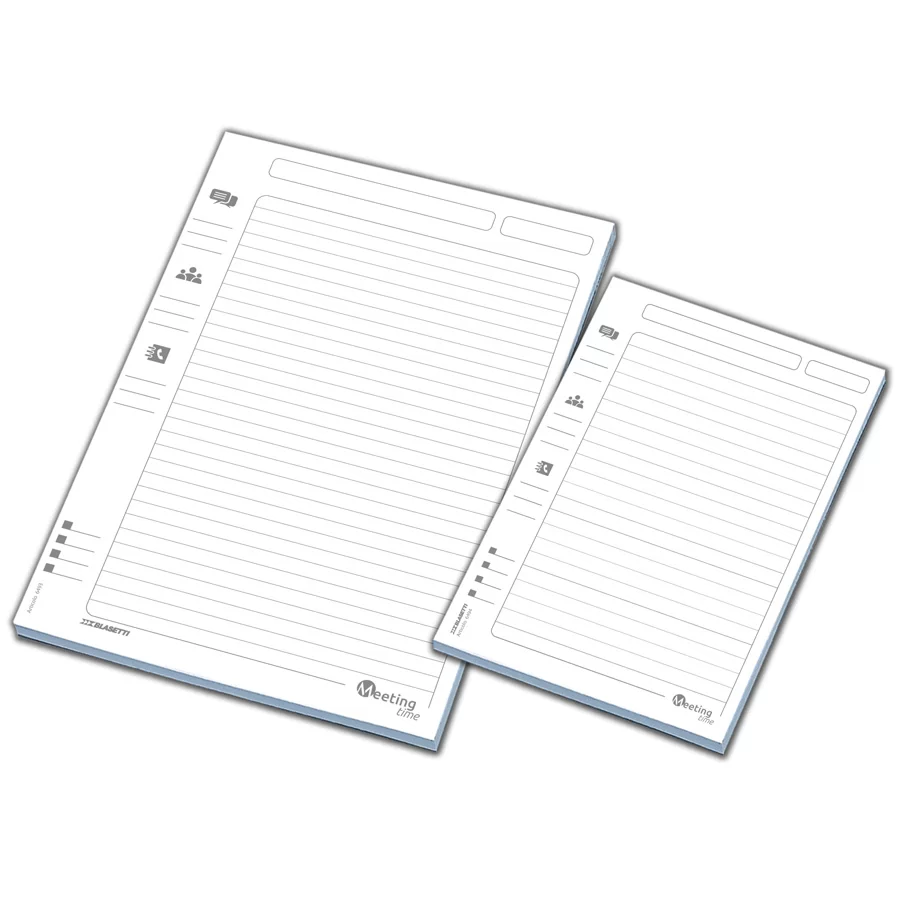 Il blocco per appunti Meeting Time è progettato per ottimizzare l’utilizzo della carta durante riunioni, meeting e ambienti professionali, evitando sprechi e offrendo una soluzione pratica ed efficiente.