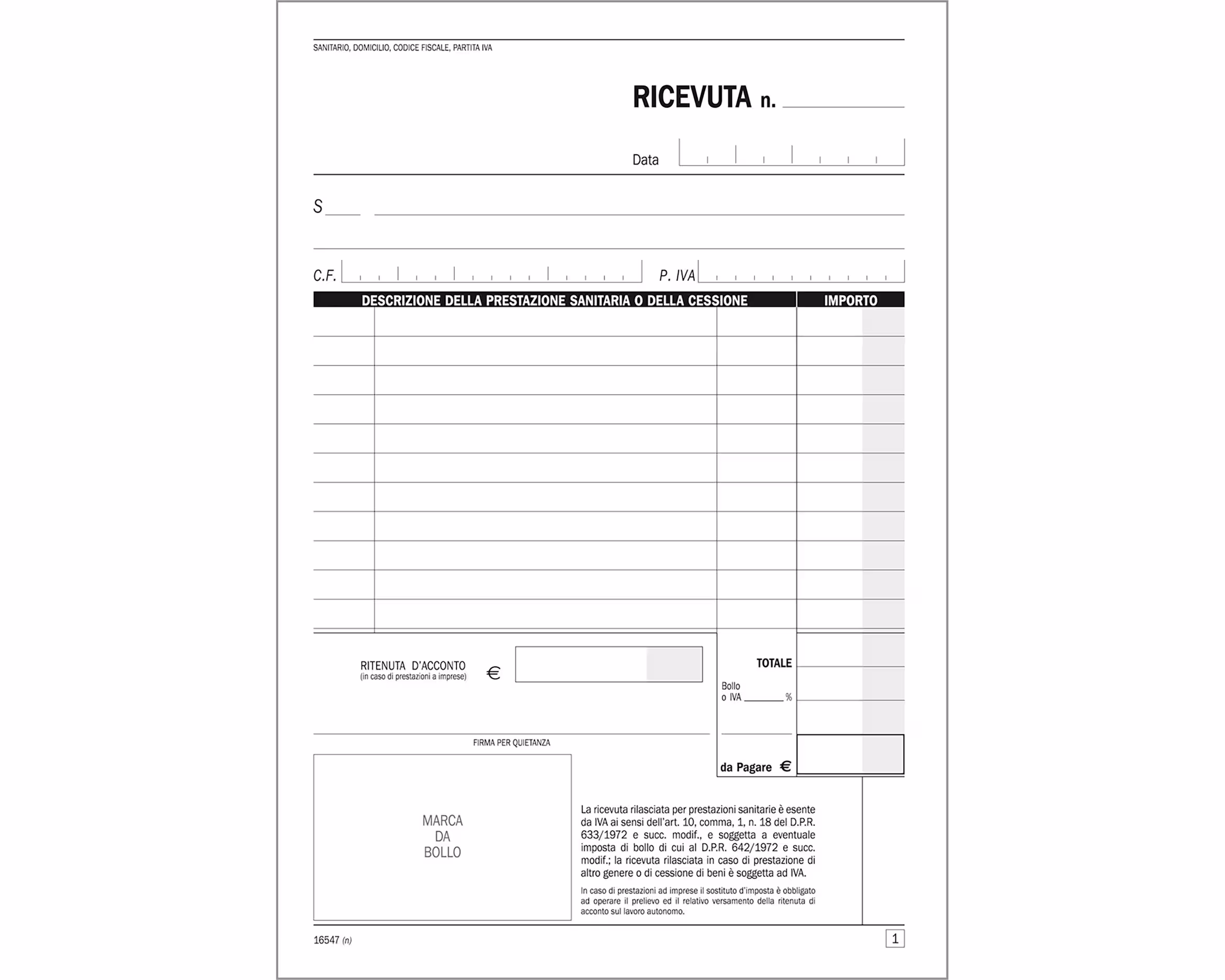 Blocco ricevute sanitarie DU165470000 Data Ufficio