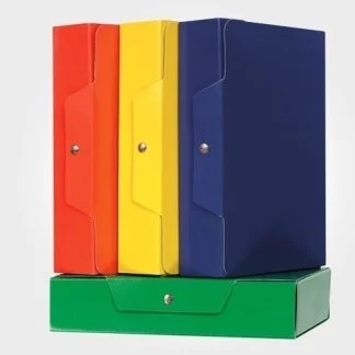 Cartella in presspan ad alto spessore verniciato e plastificato, ideale per l’archiviazione e la presentazione di progetti e disegni. Chiusura interna ed esterna con tre bottoni a pressione. Formato cm.25×35. Disponibile nei dorsi cm.4/ 6/ 8/ 10/ 12/ 15.