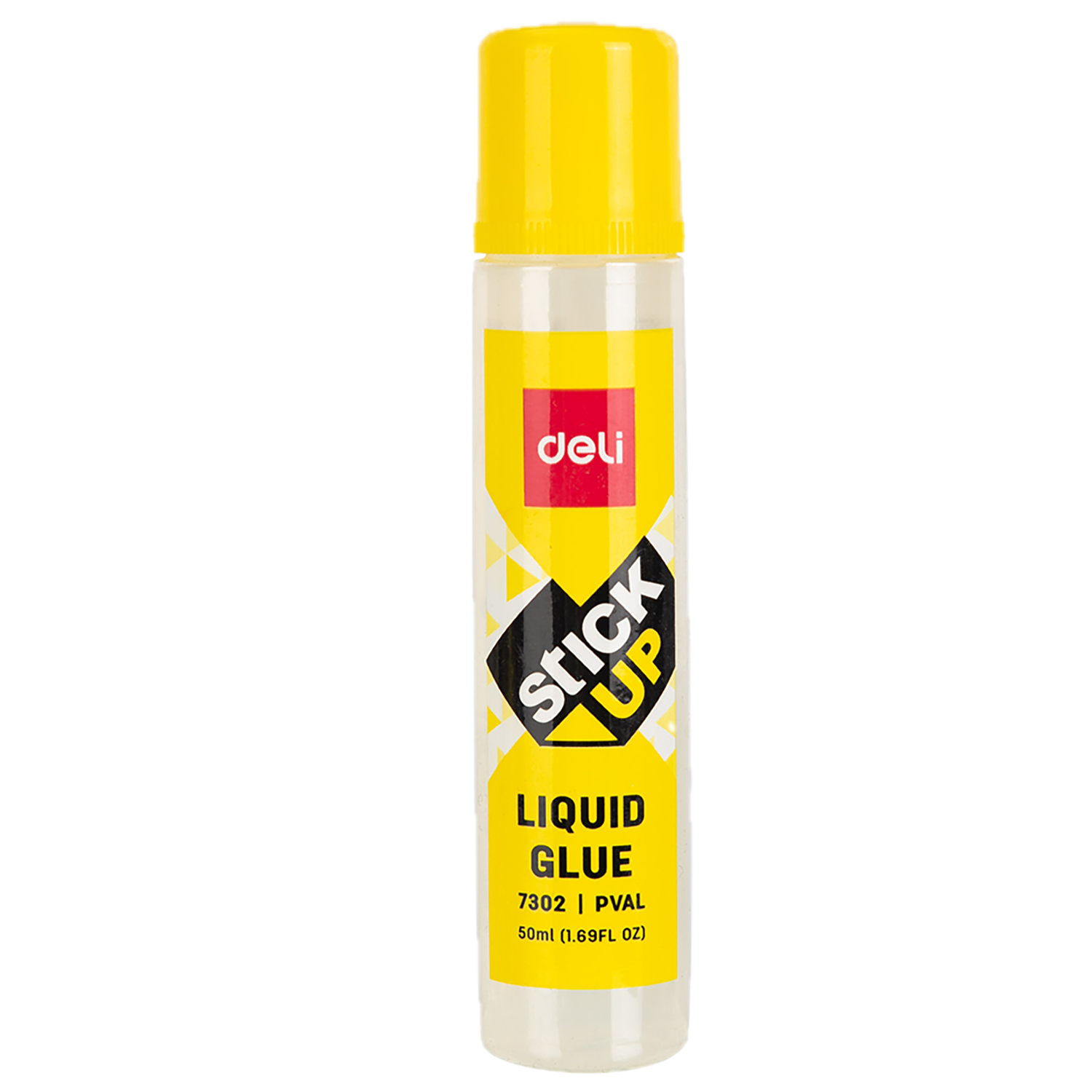 Colla liquida trasparente Deli Stick Up E7302, ideale per incollaggi precisi su carta e materiali leggeri in ambito scolastico, creativo e d’ufficio.