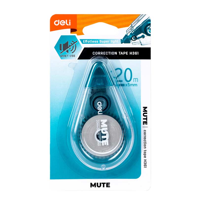 Nastro di correzione Deli Mute EH361 progettato per garantire correzioni precise e silenziose in ambito scolastico, professionale e domestico. Ideale per un utilizzo quotidiano, consente di correggere rapidamente errori su documenti senza lasciare tracce visibili. La struttura compatta e l’applicazione fluida assicurano un utilizzo semplice e continuo, mentre il meccanismo silenzioso lo rende particolarmente adatto ad ambienti condivisi come uffici e aule. L’elevata lunghezza del nastro garantisce una lunga durata nel tempo.