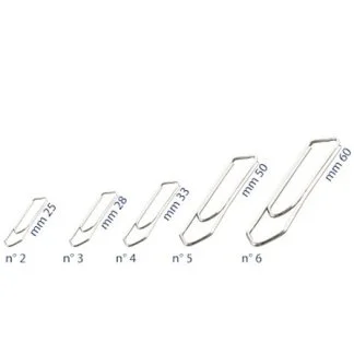 Fermagli in acciaio zincato antiruggine. Scatole da 100 pezzi nelle misure 2, 3, 4, 5, 6.